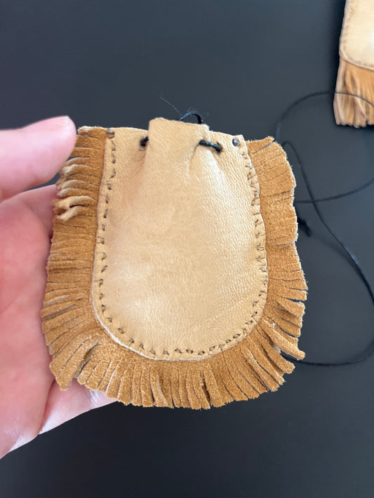 Elk Hide Talisman Fringe Corded Crossbody Pouches
